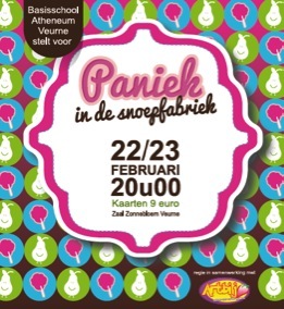 Vzw ARTBIJ nam de uitdaging aan om samen met de leerlingen en leerkrachten van de Basisschool Atheneum Veurne de musicalvoorstelling Paniek in de snoepfabriek op poten te zetten.